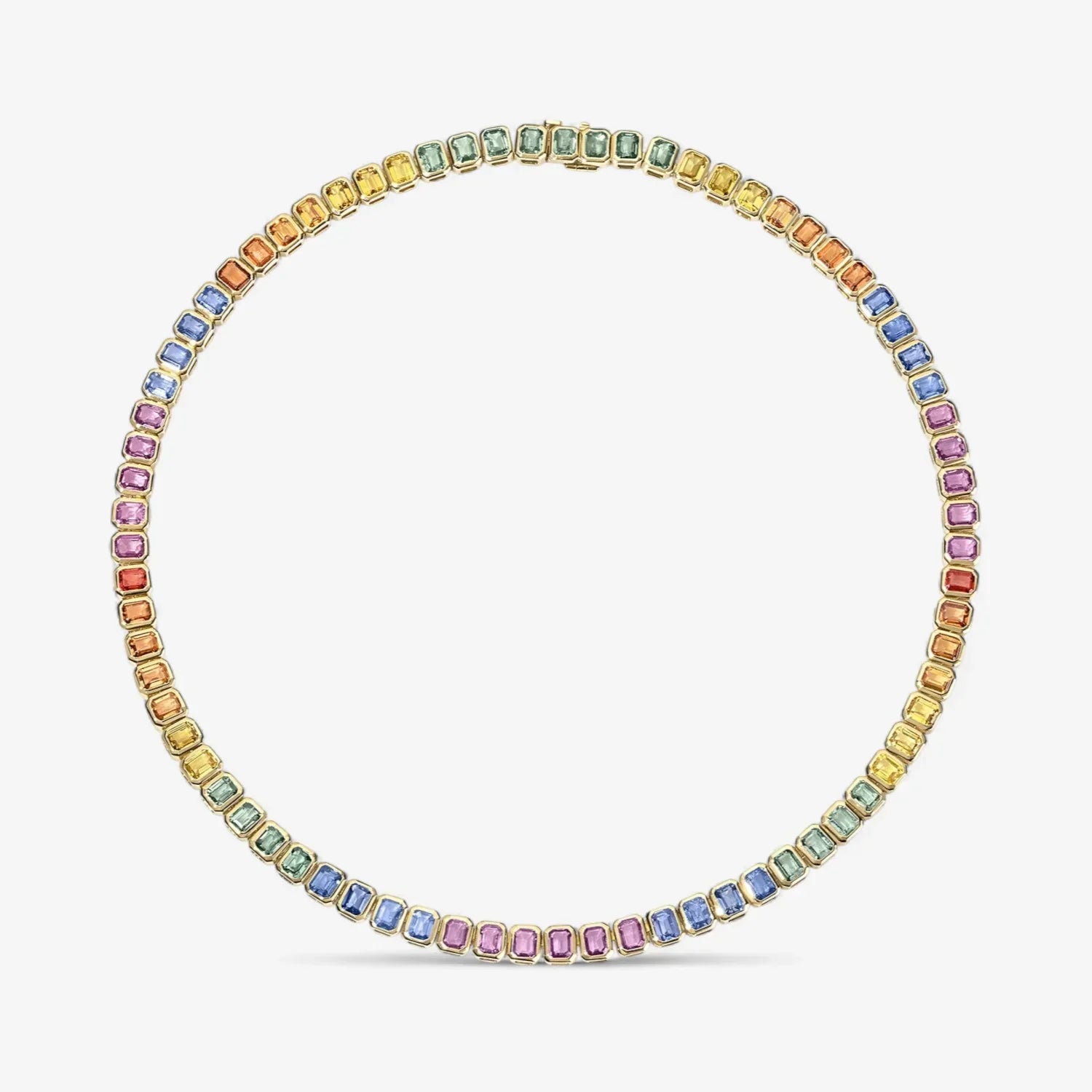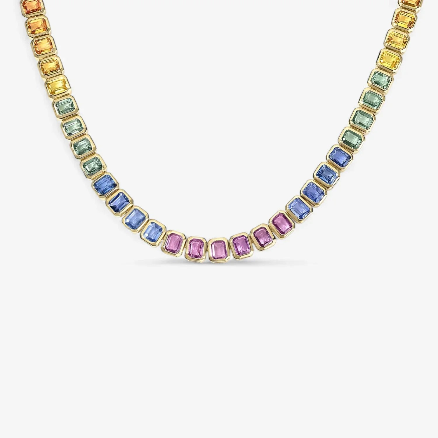 LUNERA Emerald Cut Rainbow Crystal Tennis Necklace